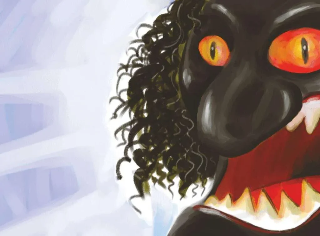 «رُبَّمَا هُنَاكَ وَحْشٌ. وَحْشَّ أَسْوَدُ مُخِيفٌ، عِنْدَ مَجيئ اللَّيْلِ يَأْتِي يَأْكُلُ الشَّمْسَ كُلَّ لَيْلَةٍ عَلَى العَشَاءِ.