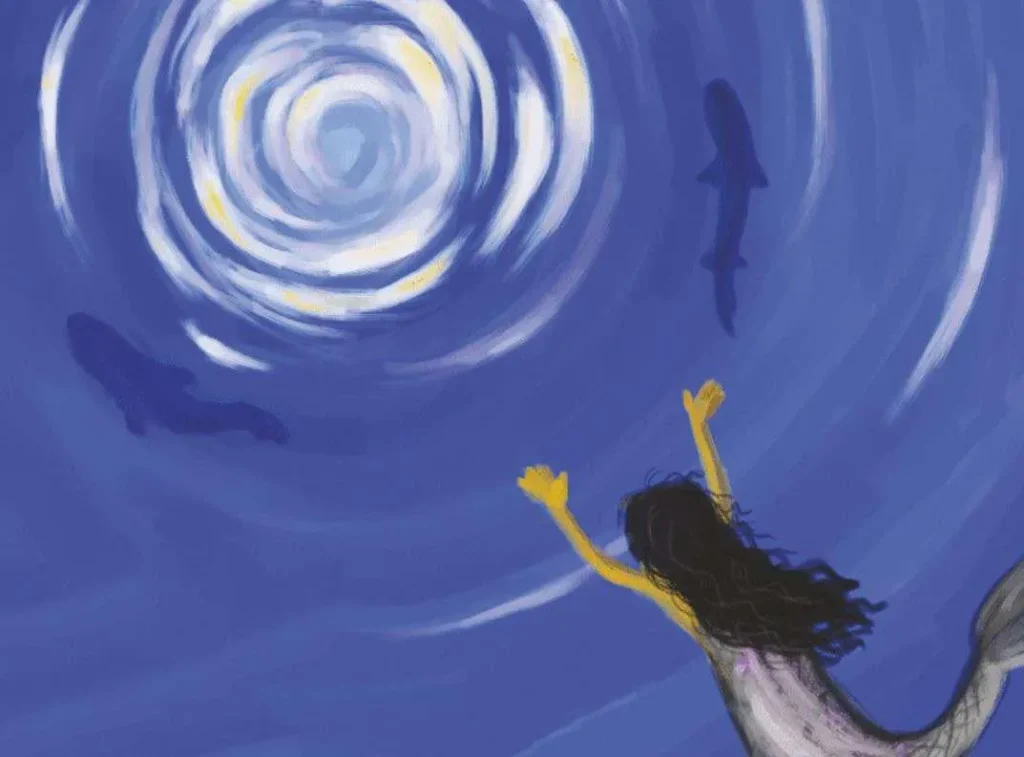 يطرح الأخ الصغير الأسئلة التي تجوب عقله على أخته الكبيرة، فأخته الكبيرة قارئة نهمة ودائمًا تحمل الكتب الكبيرة بين بيديها. وهذه المرة يتسائل عن المكان الذي تذهب إليه الشمس بعد المغيب. ترى هل تخلد الشمس للنوم بعد يوم عمل شاق؟ أم هل تذهب إلى أعماق المحيط لتنير المكان لحوريات البحر اللواتي يمرحن هناك.