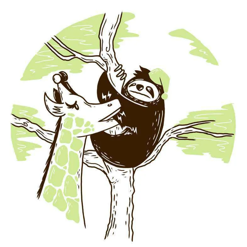 الطَّائِرُ وَالثُّعْبَانُ وَالزَّرَافَةُ وَالنَّحْلُ، كَانُوا جَمِيْعًا سُعَدَاءَ بِتَوَاجُدِ أُسْتَاذِ كَسْلَانْ مَعَهُمْ عَلَى الشَّجَرَةِ.