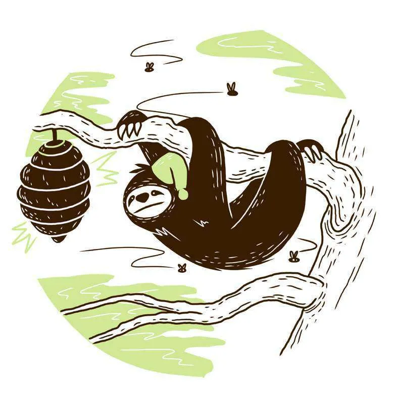 أَنَا بَارِعٌ فِيْ التَسَلُّقِ وَالتَّأَرْجُحِ، لَكِنَّ النَوْمَ هُوَ الشَّيْءُ المُفَضَّلُ لَدَيَّ!