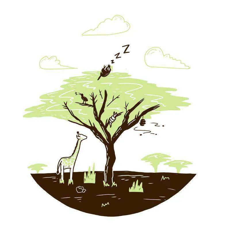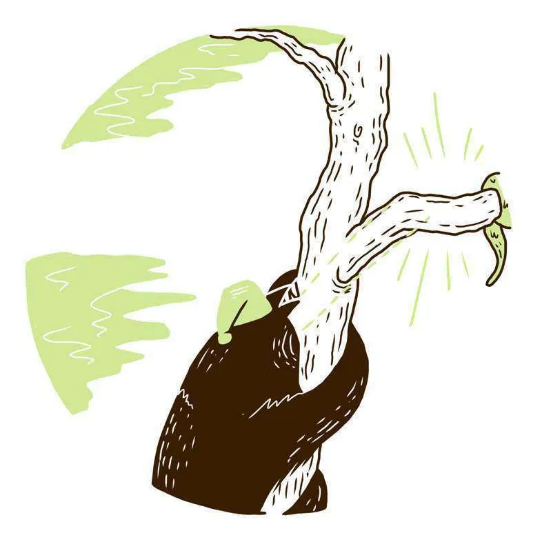 هَذَا الغُصْنُ يَبْدُوْ جَمِيْلًا! أَظُنُّ أنَّنِي سَأنَامُ هُنَا اللَّيْلَةَ. أَلَاْ تَظُنُّونَهَا فِكْرَةً رَاْئِعَةً؟