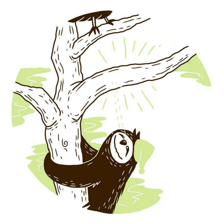 قالتِ الحيواناتُ: حَاوِلْ أَنْ تَتَسَلَّقَ غُصْنًا آخَرَ يَا أُسْتَاذُ كَسْلَانْ.