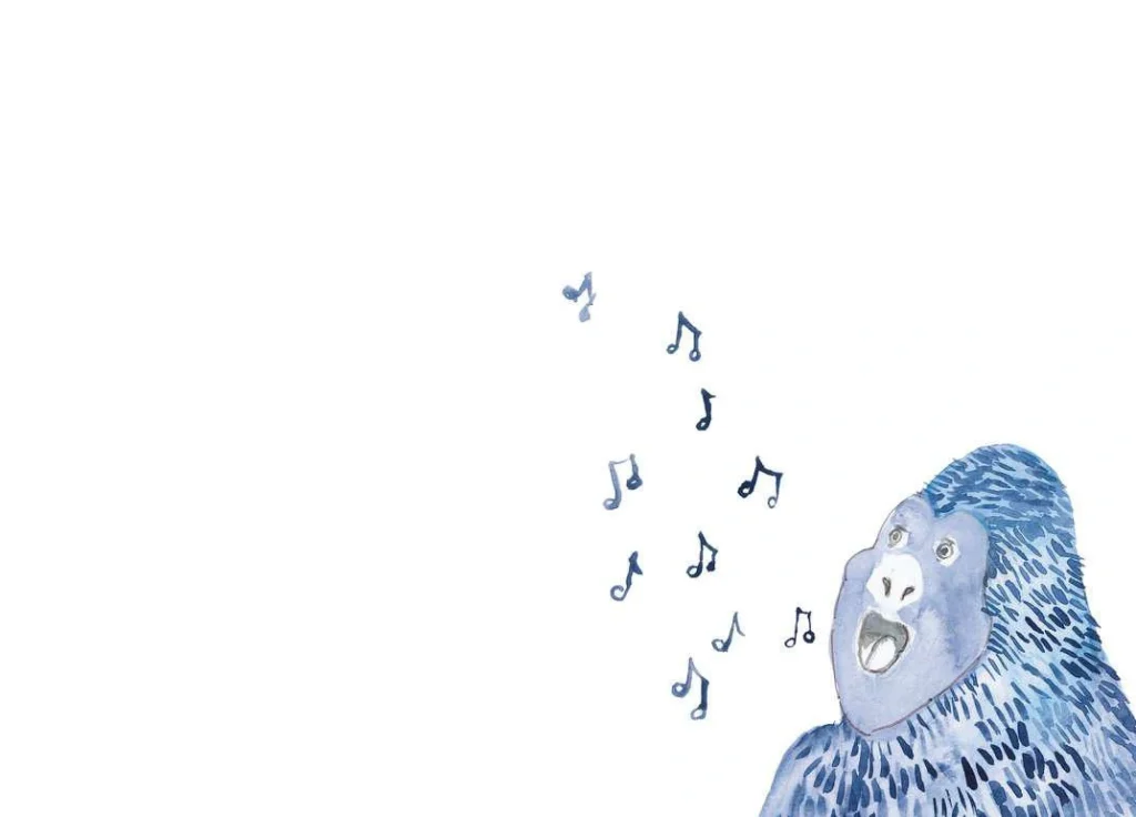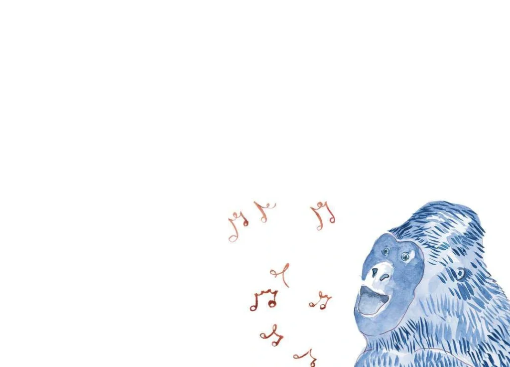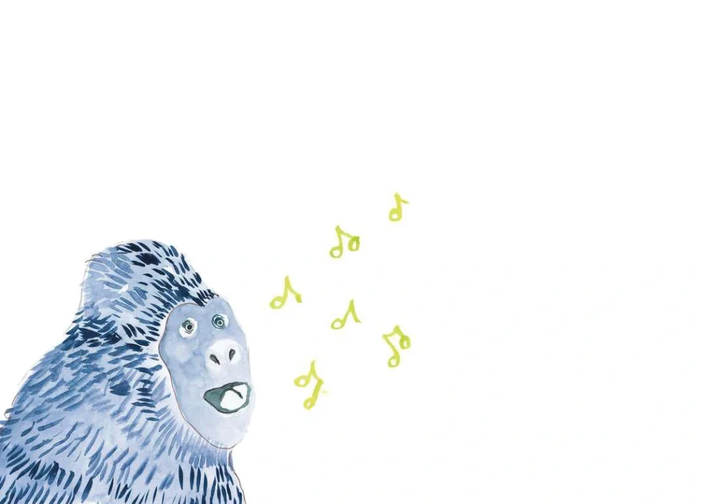 جَاءَتِ الغُورِيلّا وغَنَّتْ أُغْنِيَّةَ الأُمِّ بِصَوتِها الخَشِنِ.