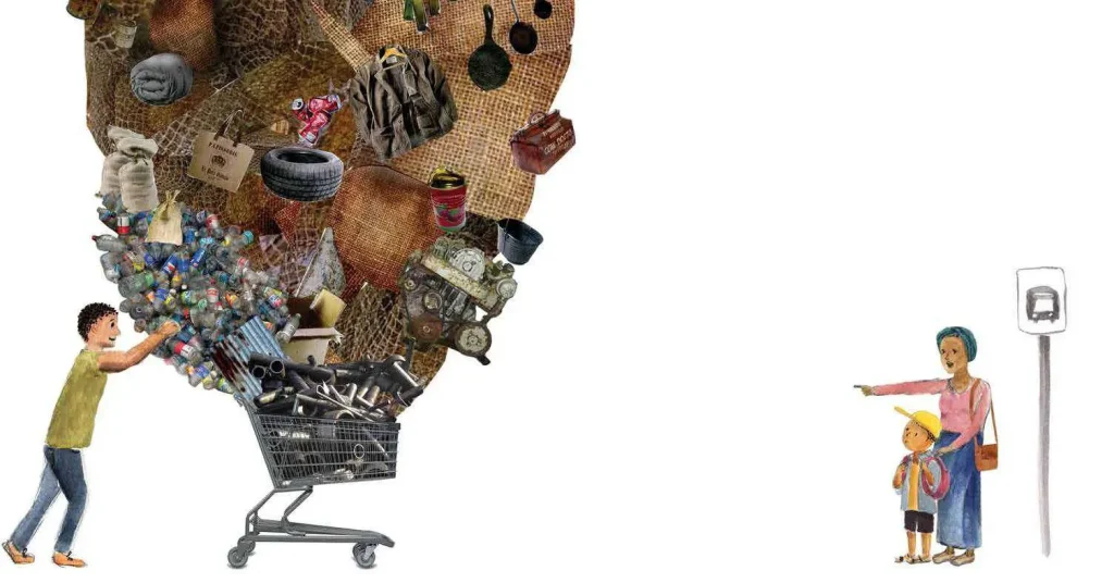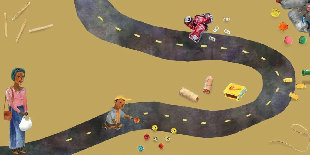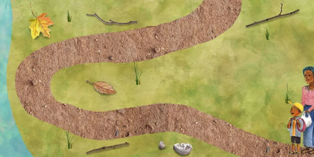 عَلَى ضِفَّةِ النَّهْرِ وَجَدَ مَاجِدٌ أَشْيَاءَ أَكْثَرَ بِكَثِيرٍ، أَشْيَاءَ نَاعِمَةً وأُخْرَى خَشِنَةً، وَأَشْيَاءَ خَضْرَاءَ وَأُخْرَى بُنِّيَّةً.