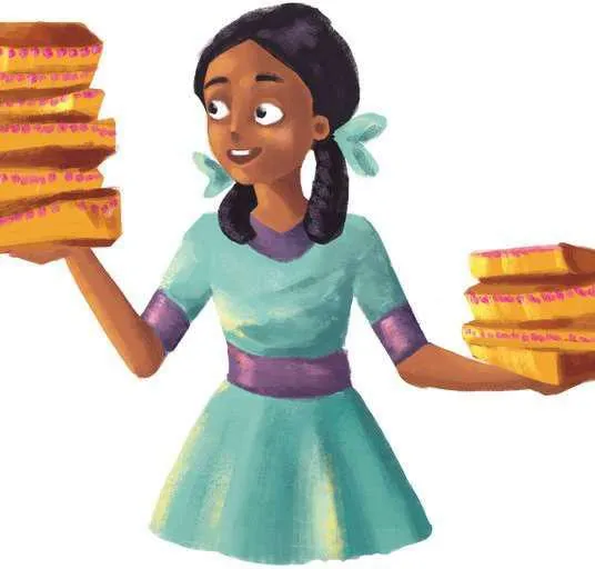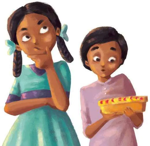 تُمَّ ابِتّسَمَتْ وَقَالَتْ: لَدَيَّ فِكْرَةٌ! نَحْنُ لَسْنَا فِي حَاجَةٍ إِلَى أَنْ نَأْخُذَ مَئَةَ قِطْعَةٍ مِنْ الْحَلْوَى بِالضَّبْطِ !