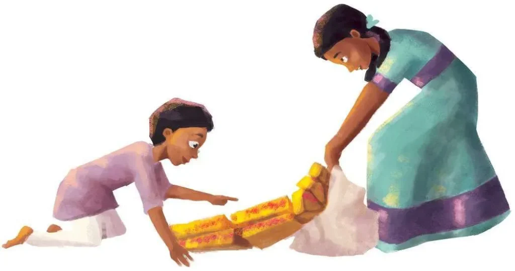 قَالَتْ الْأُمُ: لَقَدْ كَانَ ذَلِكَ سَرِيعًا! هَلْ أَنْتُمْ مُتَأَكِدُونَ أَنَّ لَدَيْنَا مَا يَكُفِي الْجَمِيعَ؟ قَالَ دُودُو : نَعَمْ يَا أُمِي. أَنَا مُتَأَكِّدٌ جِدًّا جِدًّا. و…جَائِعٌ جِدًّا جِدًّا جِدًّا.