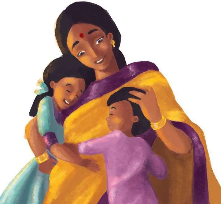 احْتَضَنَتْ الْأَمُ أَرِيجَ وآدَمَ.