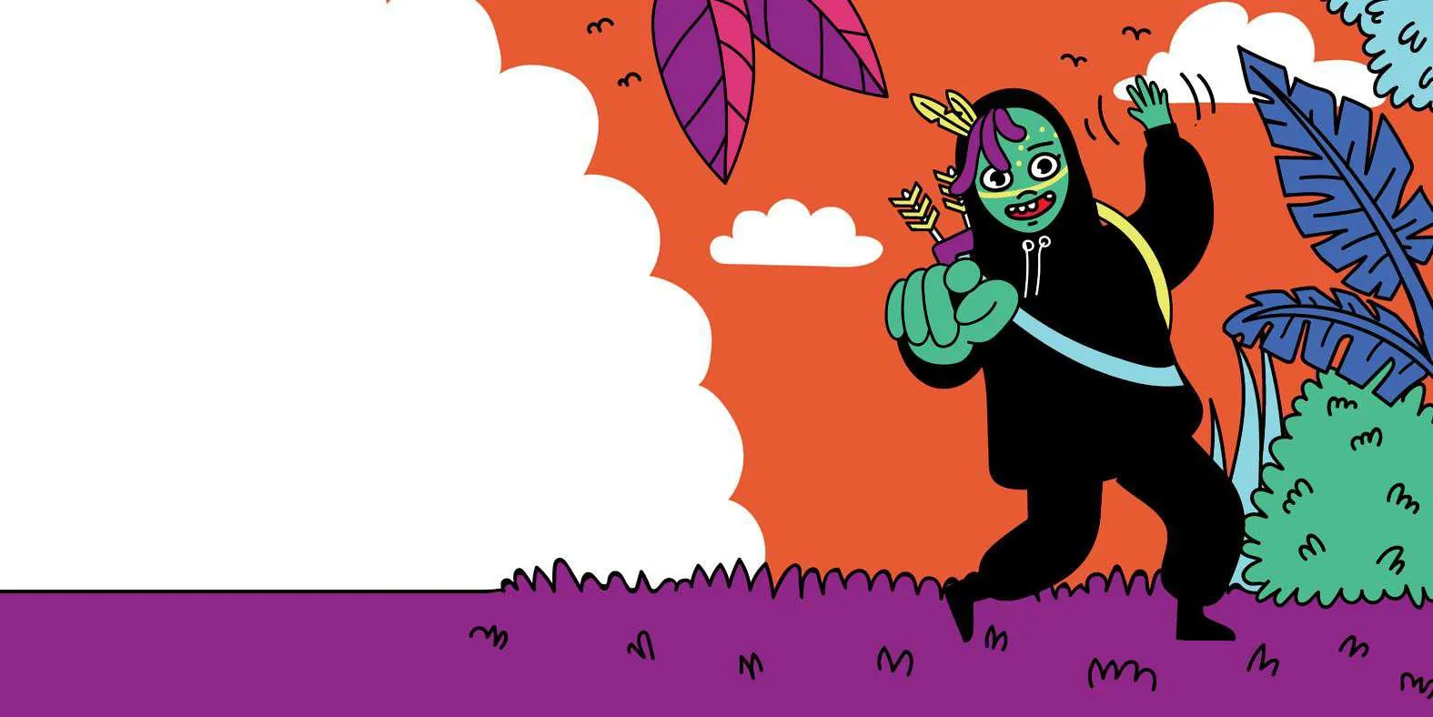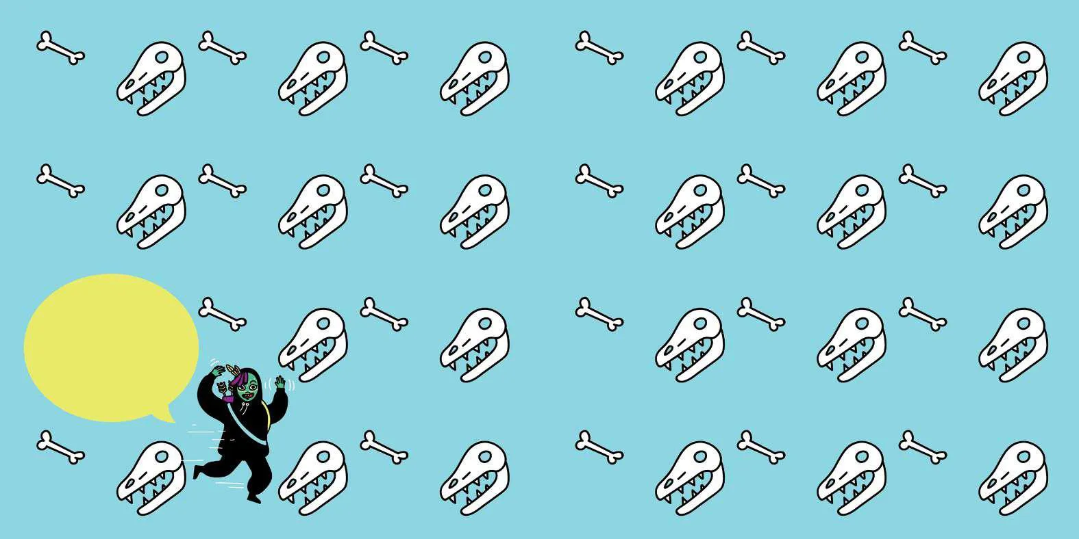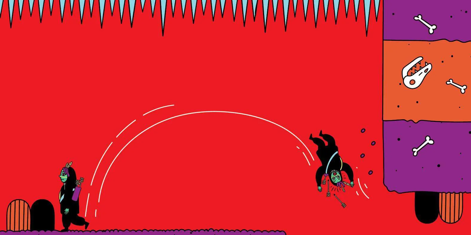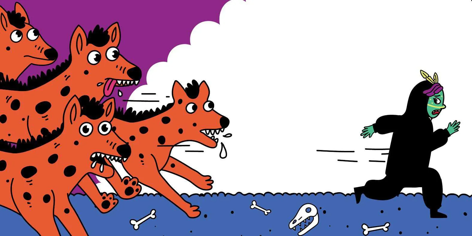 هُنالِكَ مَجْموعَةٌ مِنَ الضِّبَاعِ تُلاحِقُنَا! يَجِبُ عَلَيْنَا أَنْ نَرْكُضَ بِسُرْعَةٍ أَكْبَرَ! هَيَّا، أَسْرِعْ! تَجَاهَلِ الصَّفْحَةَ الْقَادِمَةََ! لا تَنْظُرْ إِلَيْهَا فَقَطْ إِقْفِزْ لِلْأَمَامِ.