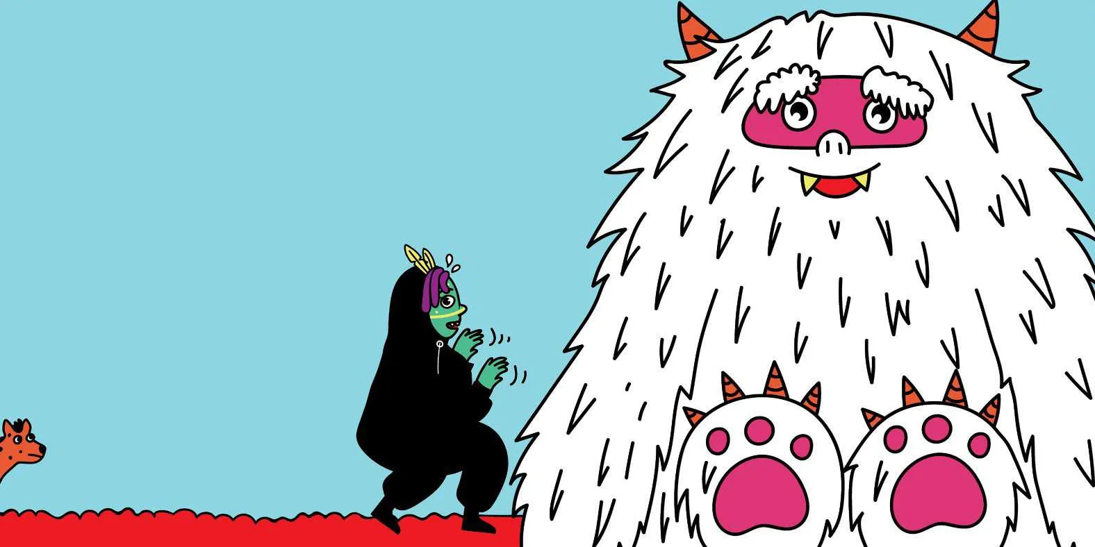 إنَّهُ الْوَحْشُ! يَجِبُ عَلَيْنَا أَنْ نُوَاجِهَهُ! لِنُظْهِرْ لَهُ أَنَّنَا لَسْنَا خَائِفَيْنِ مِنْهُ! فَلْتَقُلْ مَعِي: أَيُّهَا الوَحْشُ الكَرِيْهُ!