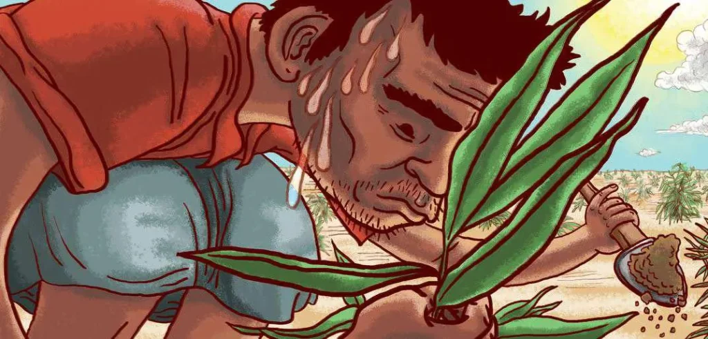 وبمرورِ الوقت، بدأت جذورُ البامبو في النمو شيئًا فشيئا، وبدأت الأرضُ في التحولِ التامِ من اللونِ الأصفرِ وحالةِ الجفافِ إلى اللونِ البني الرطب، فأصبحت تربةً خصبةً صالحةً للزراعة.