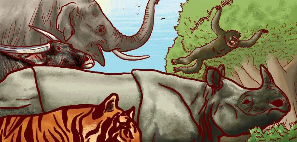 وجاءَ دورُ الحيواناتِ أيضًا لتحجزَ لها مكانًا على الأرضِ الجديدة، فتوافدت قطعانُ الجاموس، وجاءت الأرانبُ والغزلان، واستقرت الأفيالُ والنمور أيضا بين أشجار أنس .