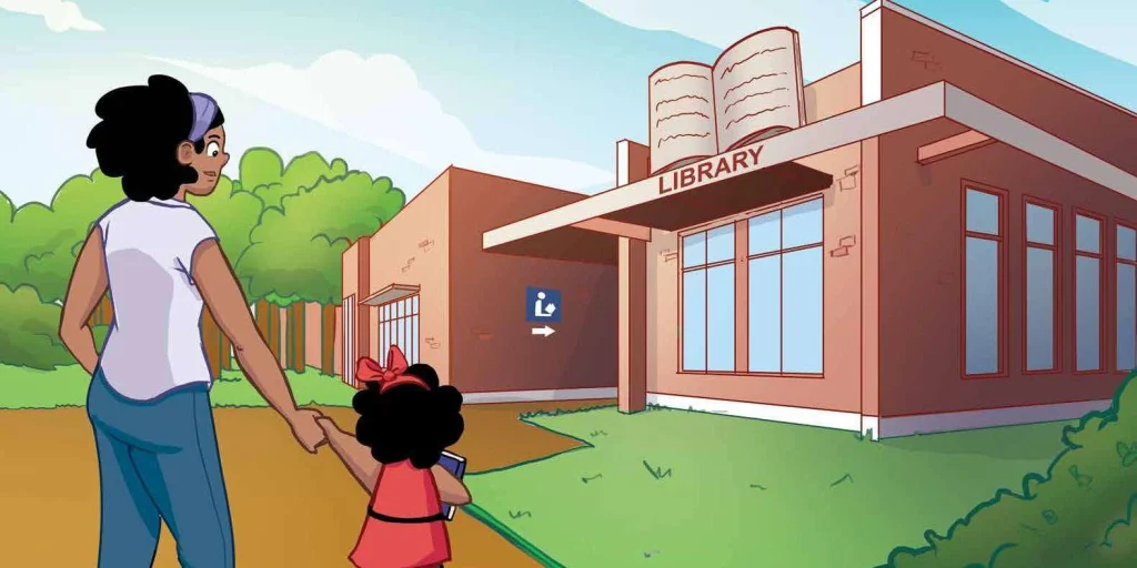 قصة حول فتاة صغيرة محبة للكتب وتجد المكتبة مكانها المفضل.