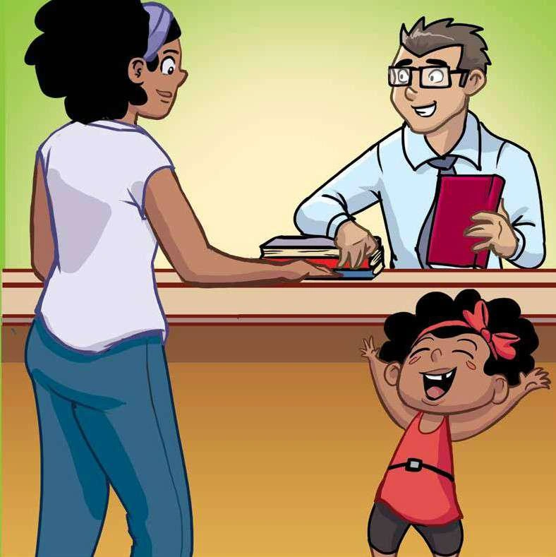 «أَرَأَيتِ؟ تُعِيدين الكُتُبَ وتسَتَعِيرينِ المَزِيدَ.»