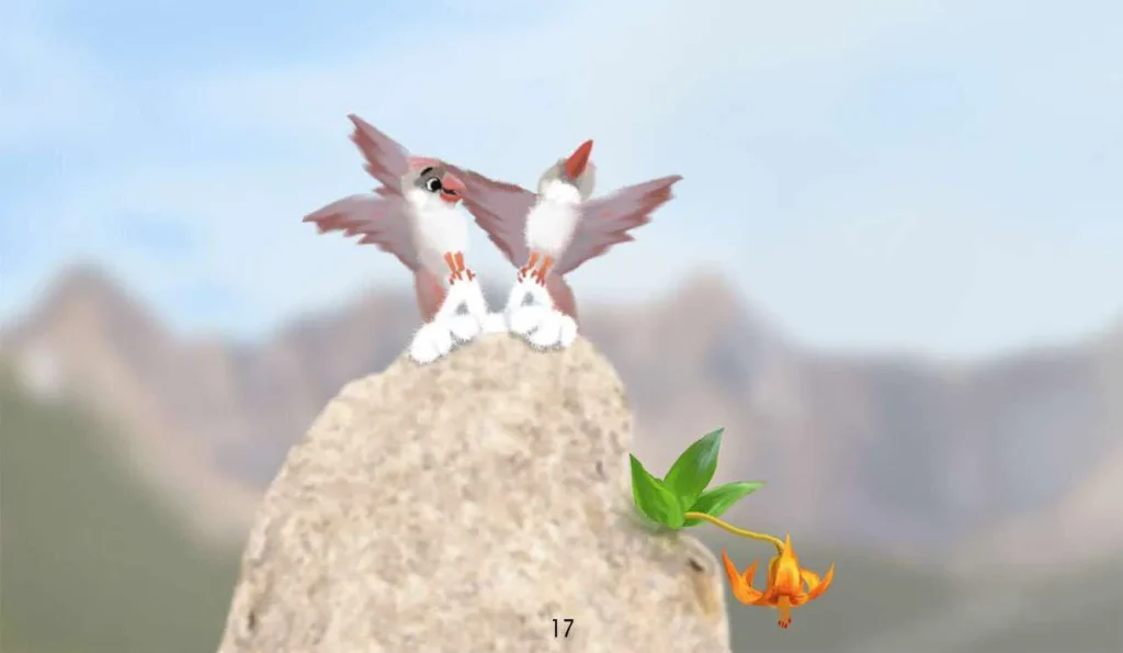 وَأَخِيرًا وَصَلَتْ إلى قِمَّةِ الْجَبَلِ بِمُسَاعَدَةِ الْعَصَافِيرِ. قَالَتْ الْعَصَافِيرُ:جَيِّدْ؟