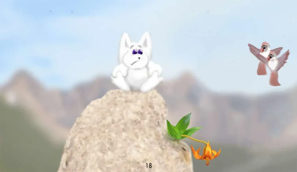 بَعْدَ مُرُورِ بِضعَةِ أَيَّامٍ زَارَتْ الْعَصَافِيرُ الْأَرْنَبَةَ مَرَّةً أُخْرَى، وَهَذِهِ المَرَّة لَاحَظُوا أَنَّهُ لَمْ يَكُنْ لَدَيْهَا أَيَّةُ زَهْرَةٍ عَلَى الإِطْلَاقِ. سَأَلَتْ الْعَصَافِيرُ: أَيْنَ زَهْرَتُكِ؟