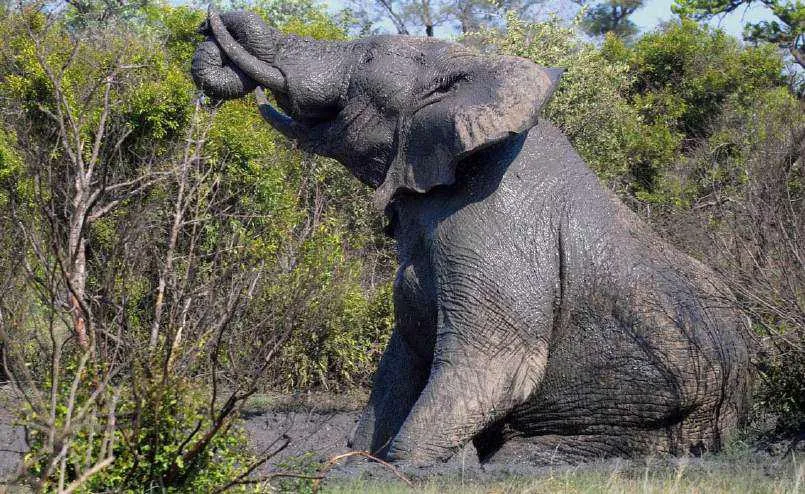 تَأْخُذُ الْفِيَلَةُ حَمَّامَاتِ الْوَحْلِ وَتُغَطِّي نَفْسَهَا بِالْوَحْلِ الرَّطْبِ لِتَحْمِيَ جِلْدَهَا مِنَ الشَّمْسِ وَلَسْعَاتِ الْحَشَرَاتِ.