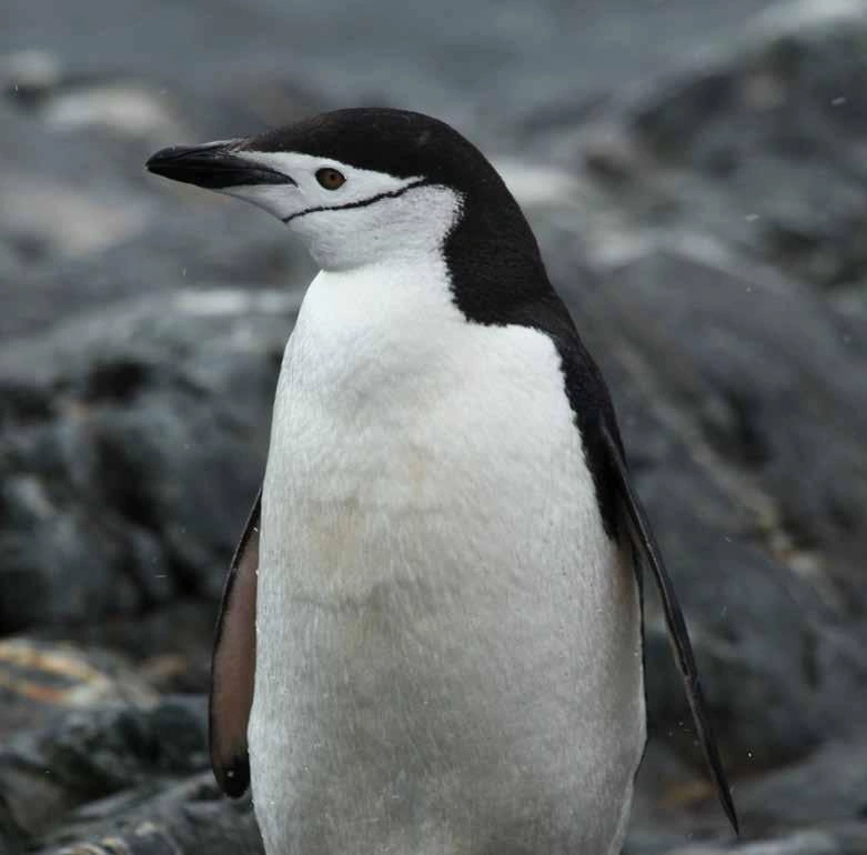 يَمْتَلِكُ الْبِطْرِيقُ شَرِيطِيُّ الذَّقْنِ خَطًّا رَفِيعًا أَسْوَدًا حَوْلَ ذَقْنِهِ. وَهُوَ مَعْرُوفٌ بِالنَّوْعِ الْأَكْثَرِ عُدْوانِيَّةً مِنْ بَيْنِ أَنْوَاعِ اْلبِطْرِيقِ.