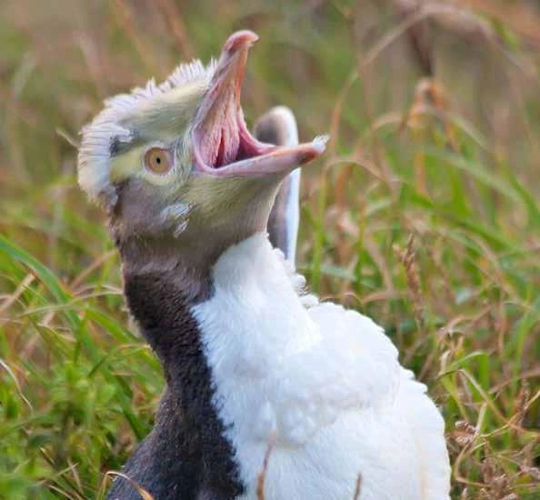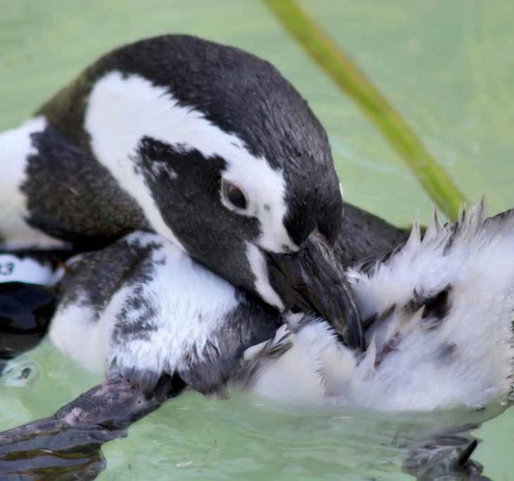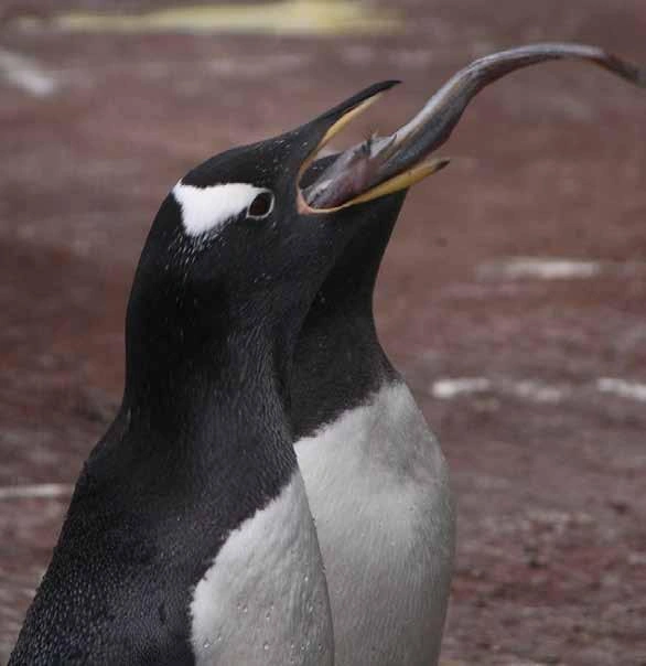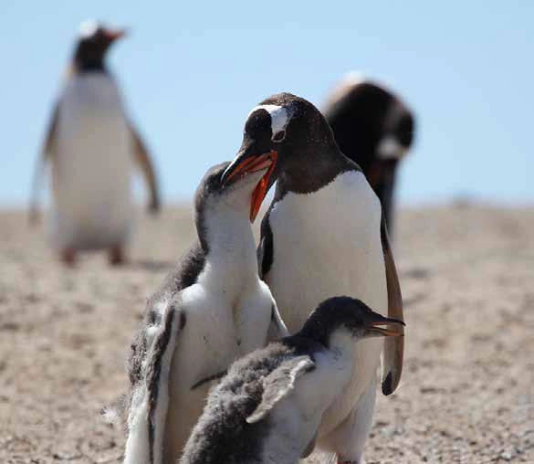 لَا تَزَالُ الطَّبَقَةُ الْخَارِجِيَّةُ مِنَ الرِّيشِ الْأَكْثَرُ كَثَافَةً لَدَى صَغِيرِ الْبِطْرِيقِ فِي طَوْرِ النُّمُوِ، وَلِهَذَا، عَلَى الْوَالِدَيْنِ تَوْفِيرُ الطَّعَامِ لَهُ. يَفْعَلُ الْوَالِدَانِ ذَلِكَ عَنْ طَرِيقِ اجْتِرارِ الطَّعَامِ. حيثُ يَصْطَادُ الْوَالِدُ الطَّعَامَ وَيُمْسِكُ بِهِ، ثُمَّ يُلْقِيهِ فِي مِنْقََارِ صَغِيرِهِ.