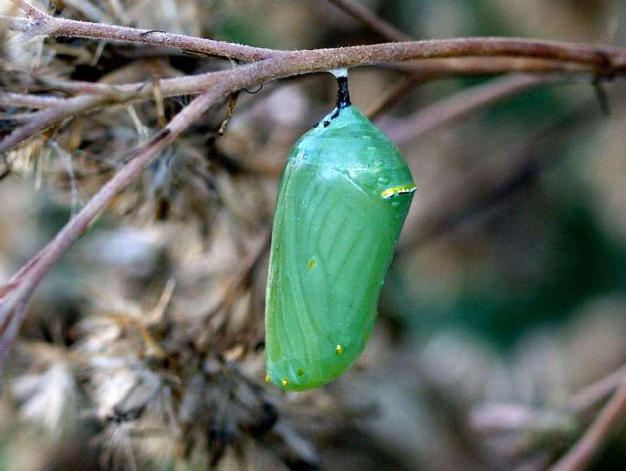 الْيَرَقَةُ بصدَدِ التَّحَوُّلِ إِلَى فَرَاشَةٍ دَاخِلَ الشَّرْنَقَةِ. يَسْتَغْرِقُ ذَلِكَ أُسْبُوعًا فِي بَعْضِ الْأَحْيَانِ، وَلَكِنَّهُ قَدْ يَصِلُ إِلَى ثَمَانِيَةِ أَشْهُرٍ أَحْياَنًا.