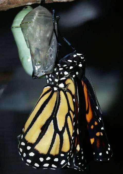 لقَد تَحَوَّلَتِ الْيَرَقَةُ إِلَى فَرَاشَةٍ! إِنَّهَا جَاهِزَةٌ لِلتَّحْلِيقِ بَعيدًا، وَوَضْعِ الْمَزِيدِ مِنَ الْبيْضِ لِتَبْدَأَ الدَّوْرَةُ مِنْ جَديدٍ.