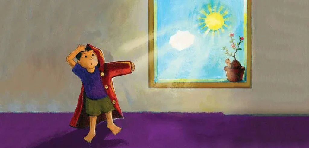 يَوْمَ الْأَحَدِ، اشْتَرَى وَالِدَا مَانُو لَمَانُو مِعْطَفًا أَحْمَرَ. سَأَلَ مَانُو: أُمِّيْ، هَلْ يُمْكِنُنِي ارْتِدَاؤُهُ الْآَنَ؟ قَالَتْ الأُمُّ: لَا يَا عَزِيزِي، الْأَمْطَارُ قَرِيبَةٌ، لَكِنَّ السَّمَاءَ صَافِيَةٌ الآنَ.