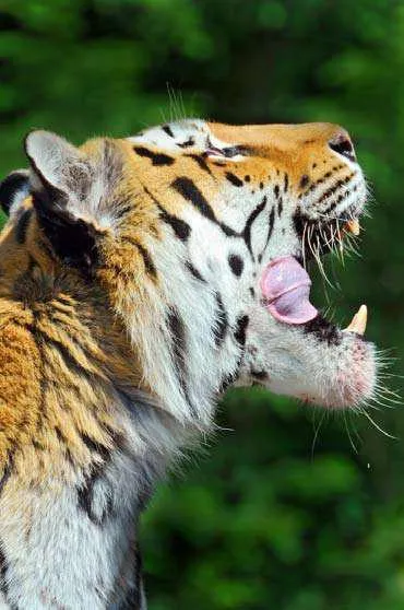 لِلنُّمُورِ أَسْنَانٌ كَبِيرَةٌ وَحَادَةٌ تُسَاعِدُهُم فِي الصَّيْدِ وَالْأَكْلِ.