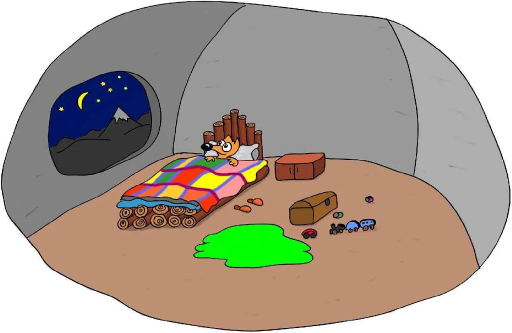 فِي تِلْكَ اللَّيْلَةِ، لَمْ يَسْتَطِعْ بُوبُو النَّوْمَ حَتَّى وَقْتٍ مُتَأَخِّرٍ مِنَ اللَّيْلِ. كَانَ يُطِلُّ عَلَى قِمَّةِ الْجَبَلِ الْبَعيدَةِ وَيَحْلُمُ بِالْمُسَابَقَةِ. كَانَ مُتَشَوِّقًا لِصَبَاحِ غَدٍ.