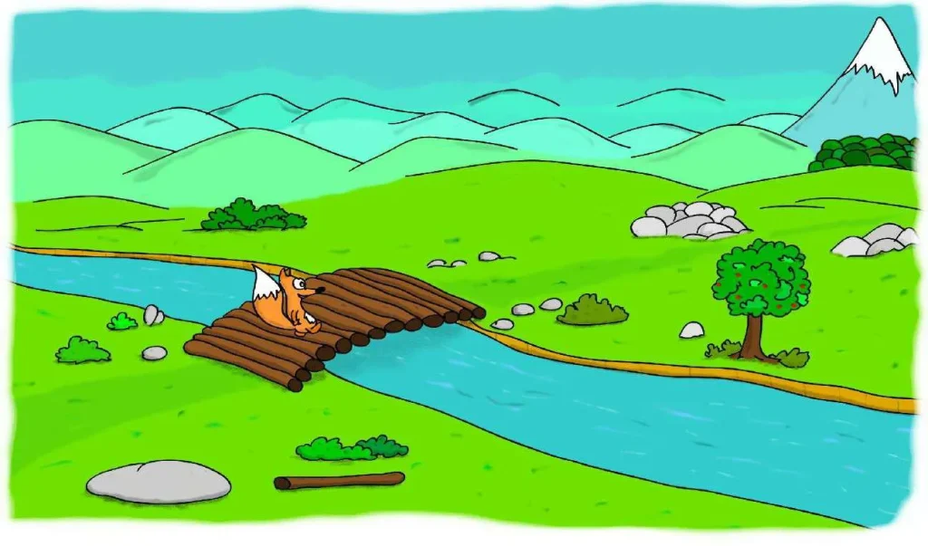 وَعَدَ بُوبُو أُمَّهُ بِأَنْ يَكُونَ حَذِرًا وَأَنْ يَعُودَ قَبْلَ حُلُولِ الظَّلَامِ، ثُمَّ أَسْرَعَ نَحْوَ الْجَبَلِ. تَخَطَّى الْمُرُوجَ وَسَارَ حَوْلَ التِّلَالِ الصَّخْرِيَّةِ، ثُمَّ فَجْأَةً وَبَيْنَمَا كَانَ يَعْبُرُ النَّهْرَ، سَمِعَ صَوْتَ شَخْصٍ يَصْرُخُ طَلَبًا لِلْمُسَاعَدَةِ.