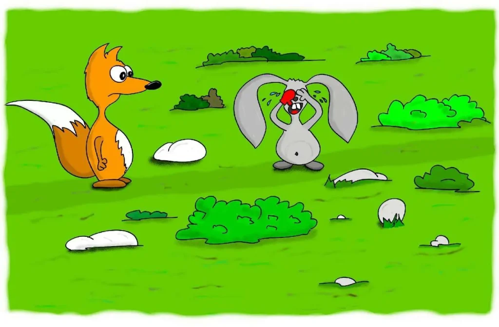 سُرْعَانَ مَا رَأَى أَرْنَبًا صَغِيرًا يَبْكِي. لَقَدْ أَضَاعَ وَاحِدًا مِنْ قُفَّازَيْهِ وَلَمْ يَعْرِفْ كَيْفَ سَيَعْثُرُ عَلَيْهِ.