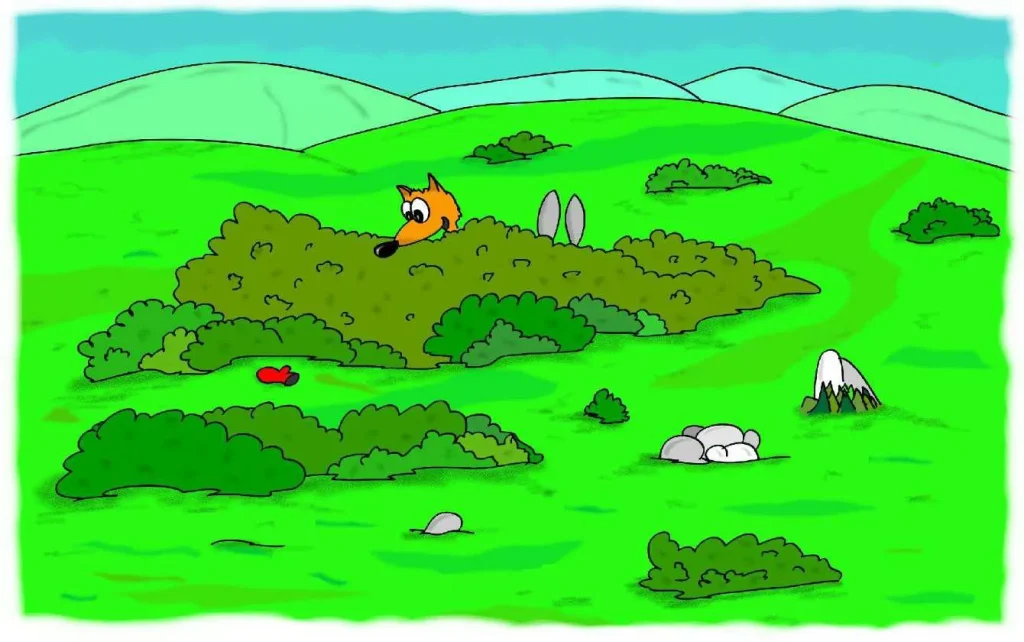 بَعْدَ فَتْرَةٍ قَصِيرَةٍ وَجَدَ بُوبُو الْقُفَّازَ مُلْقًى عَلَى جَانِبِ الطَّرِيقِ. لَا شَيْءَ يَسْتَطِيعُ الْاخْتِبَاءَ مِنْ أَنْفِ الثَّعْلَبِ. لَقَدْ كَانَ الْأَرْنَبُ سَعِيدًا جِدًّا وَعَادَ إِلَى بَيْتِهِ يَنُطُّ فَرِحًا مُرْتَدِيًا قُفَّازَيْهِ. أَسْرَعَ بُوبُو إِلَى الْجَبَلِ.