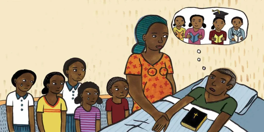 كَانَتْ غراسا عَلَى وَشْكِ أَنْ تُوْلَدَ فِي قَرْيَةٍ صَغِيرَةٍ فِي المُوزَمْبِيق. كَانَتِ الْبِلَادُ فَقِيرَةً وَلَمْ يَنَلِ النَّاسُ اسْتِقْلَالَهُمْ بَعْدُ. لَمْ تَكُنْ هُنَاكَ مَدَارِسٌ جَيِّدَةٌ لِلْأَطْفَالِ وَلَمْ يَكُنْ بِإِمْكَانِ الْكَثِيرِ مِنْهُمُ الْقِرَاءَةُ. كَانَ حُلْمُ وَالِدَةِ غراسا تَوْفِيرَ فُرَصٍ أَفْضَلَ لِأَطْفَالِهَا. وَلَكِنْ بِدُونِ التَّعْلِيمِ كَانَ الأَمَلُ ضَئِيلًا.