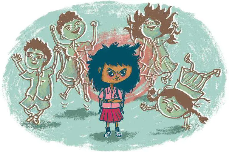عِنْدَمَا رَنَّ آَخِرُ جَرَسٍ فِي الْمَدْرَسَةِ، كَانَ جَمِيعُ الْأَطْفَالِ يَضْحَكُونَ وَيُهَلِّلُونَ بِفَرَحٍ. جَمِيعُهُمْ مَا عَدَا رَنَا. كَانَتْ رَنَا غَاضِبَةً!