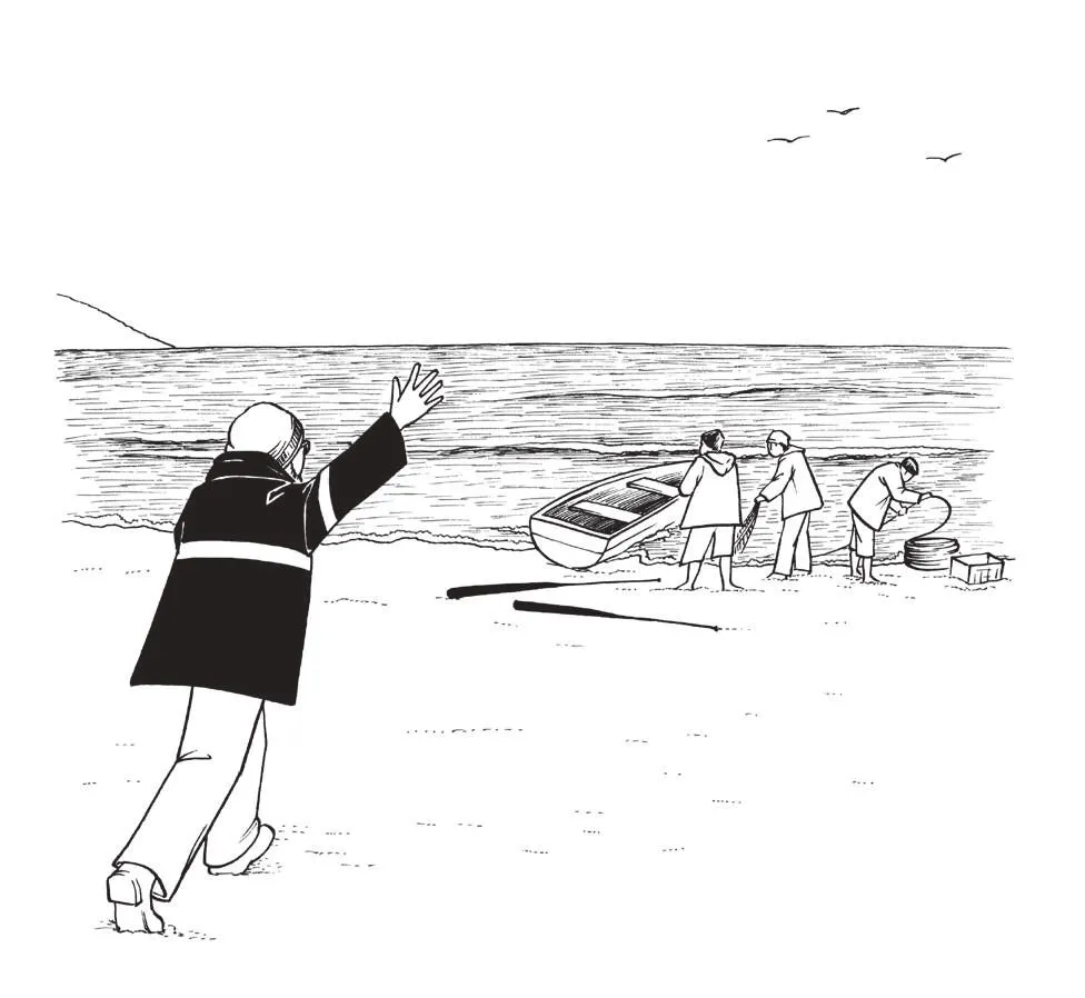 قَالَ وَالِدُ يُوسُف: الْبَحْرُ يَكْفِي الجَمِيعَ. وَأَرَاهُمْ رُخْصَةَ صَيْدِ السَّمَكِ الَّتِي كَانَتْ لِلْجَدِّ سَمِيرٍ، ثُمَ قَالَ: الْأموَاجُ لِلْجَمِيع والمِيَاهُ بِالْمَجَّان.