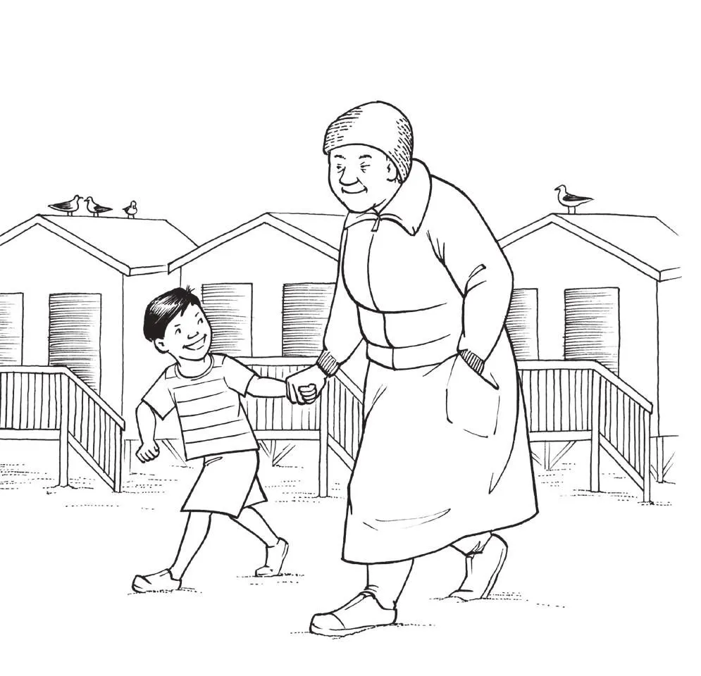 تَقُولُ الْجَدَّةُ: لَا تَكُونِي سَاذَجَةً. سَتَكُونينَ مَحْظُوظَةً لَوْ اصْطَادُوا سَرَطَانَا بَحْرِيًّا صَغِيرًا! عَلَى الْأَرْجَحِ سَيَصْطَادُونَ سَمَكَةَ الذِّيْلِ مِثْلَ كُلِّ جُمُعَةٍ. لَمَ تَعُدْ هُنَاكَ أَسْمَاكَ كَبِيْرَةٌ فِي الْبَحْرِ. يُمْسِكُ يُوسُفُ يَدَ جَدَّتِهِ، وَيَعْبُرانِ الطَّرِيقَ عِنْدَ أكُواخِ الْاسْتِحْمَامِ. تَصِيحُ طُيُورُ النَّوْرَسِ الْوَاقِفَةُ عَلَى قِمَمِ السُّقُوفِ السَّاطِعَة: مَاذَا؟ مَاذَا؟ مَاذَا لَدَيْكُمْ لِلْعَشَاءِ؟