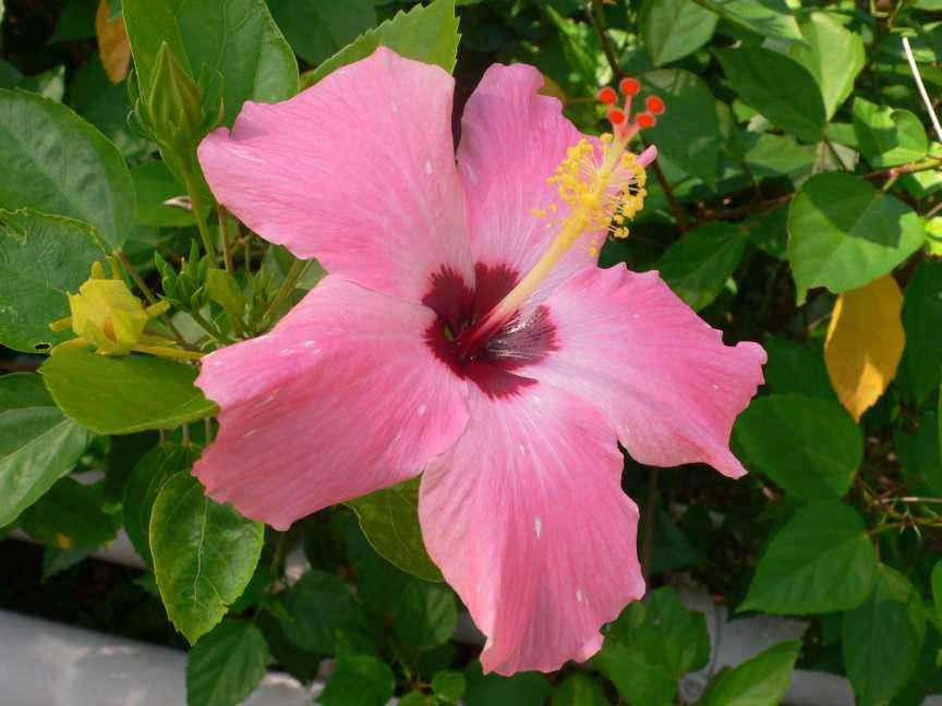 هَذِهِ زَهْرَةُ خَطْمِيٍّ وَرْدِيَّةُ اللَّوْنِ.