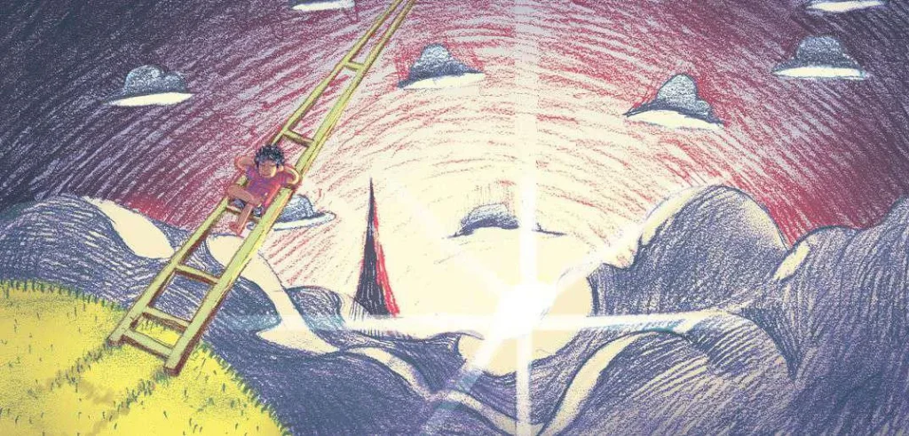 سَنَتَسَلَّقُ الْيَوْمَ سُلَّمًا مَعًا. إِنَّهُ سُلَّمْ غَيْرُ مَأْلُوفٍ. كُلَّمَا صَعَدْنَا دَرَجَةً مِنْ دَرَجَاتِ هَذَا السُّلَّمِ أَصْبَحَتِ الْمَسَافَةُ أَكْبَرَ وأَكْبَرَ وأَكْبَرَ عَشْرَ مَرَّاتٍ مَعْ كُلِّ خُطْوَةٍ. أَحْيَانًا، سَنَتَسَلَّقُ خُطْوَةً فَخُطْوَةً، وَفِي أَحْيَانٍ أُخْرَى سَنَتَخَطَّى خُطُوَاتٍ كَثِيرَةً دُفْعَةً وَاحِدَةً.