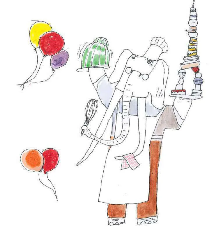قَالَ الْفِيلُ: يَسْتَطِيعُ جَدِّي أَنْ يُعِدَّ وَلِيمَةً.