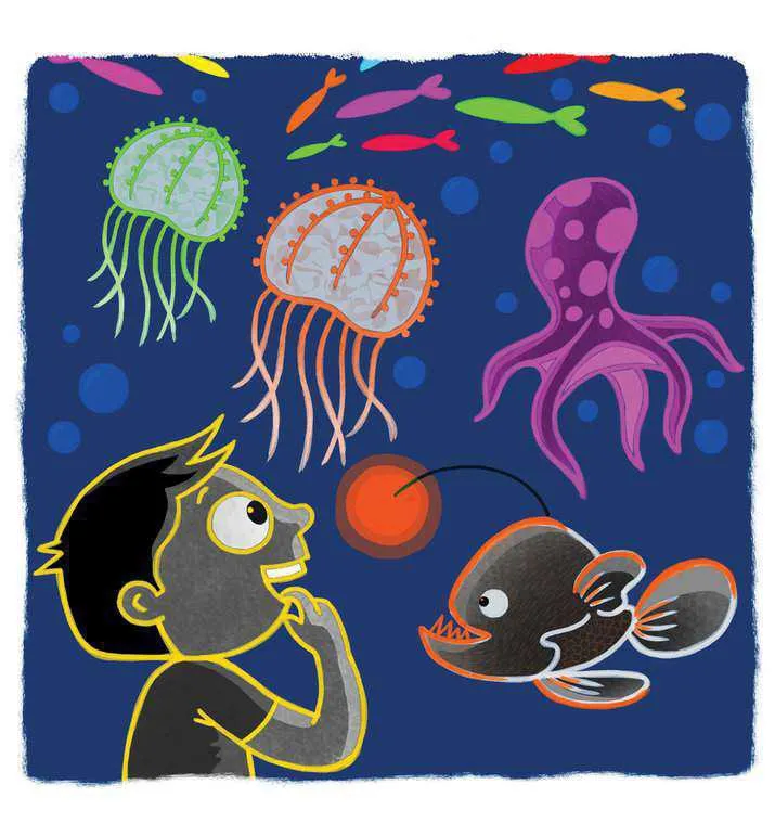 الْيَرَاعَاْت كَاْئِنَاتٌ مُضِيْئَةٌ لَكِنَّهَا لَيْسَتْ الْوَحِيْدَة. هُنَاْكَ أَنْوَاْعٌ مُخْتَلِفَةٌ مِنْ الأَسْمَاْكِ وَالْكَاْئِنَاْتِ الْبَحْرِيَّةِ فِيْ الْبَحْرِ الَّتِيْ تُنْتِجُ ضَوْءَهَا الْخَاْص.