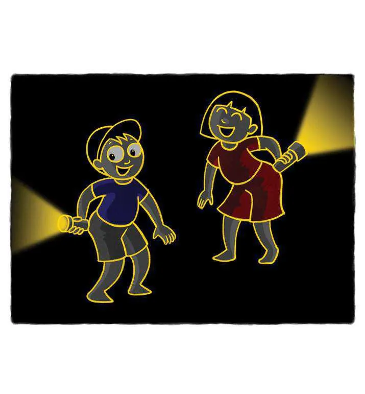2- أَثْنَاْءَ اللَّعِبِ فِيْ مَجْمُوْعَةٍ، تَخَيَلُوْا أَنْفُسَكُم مِثْلَ الْيَرَاعَاتِ بِحَمْلِكُمْ مَصَابِيْحَ صَغِيْرَةٍ وَالْقِيَاْمِ بِحَرَكَاتٍ مُخْتَلِفَةٍ مِثْلَهَا.