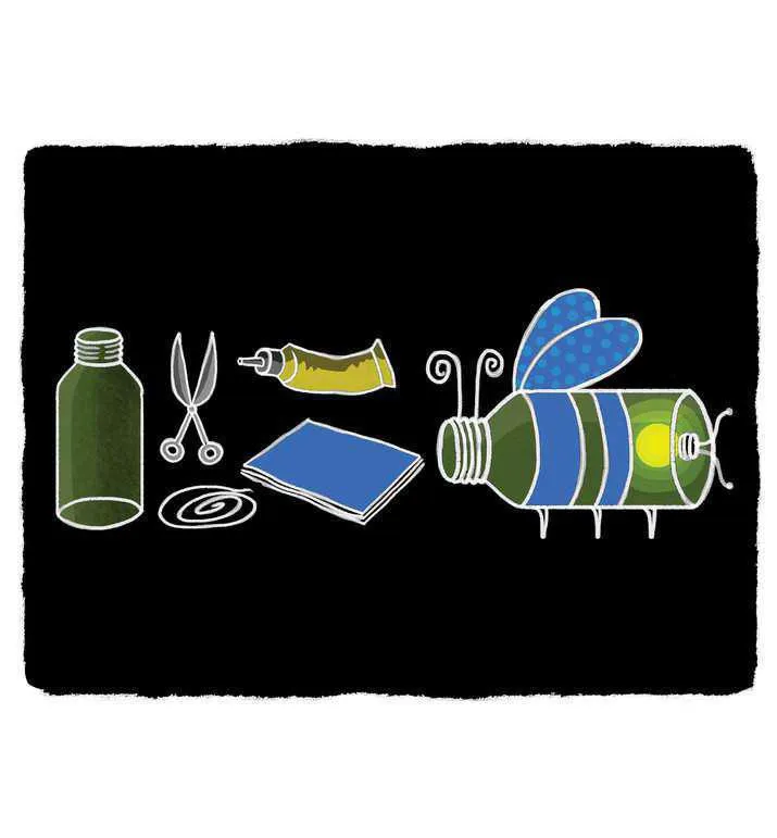 3- اصْنَعْ يَرَاْعَةً مِنَ الْمُهْمَلَاتِ بِاسْتِعْمَاْلِ قَاْرُورَةٍ بِلَاْسْتِيكِيَّةٍ وَعَصًا مُتَوَهِجَةٍ مَثَلًا.